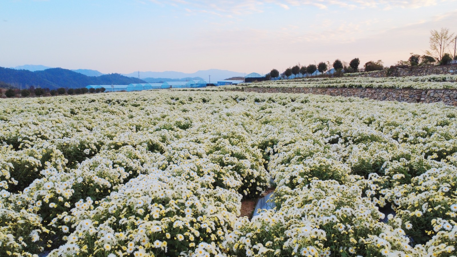 薄暮时分,落日给他的身影镀上了一层金边。“以前正在外面开车,现正在守着这片菊田,收入不错,还能照应家人。”他说,这日子,就像这怒放的菊花,越来越有盼头。